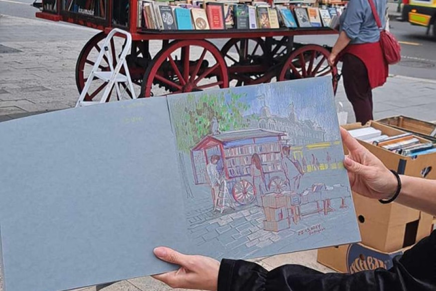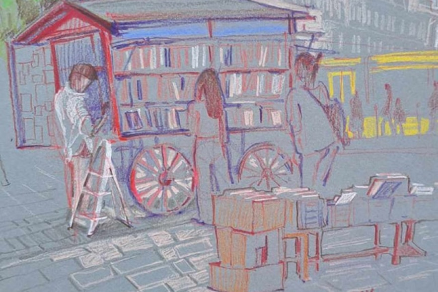 Csodaszép és kedves rajz készült tegnap a Nyugati téri könyvesszekerünkről. Köszönjük szépen az alkotónak!