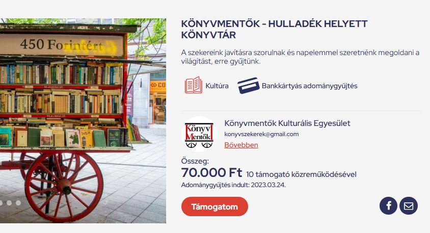 Amennyiben módotokban áll, a Ti támogatásotokat kérjük. A könyvek árát semmiképp nem akarjuk megemelni, ezért gyűjtünk a javítási munkállatokra. A rendszeres adományok, akár kisebb összegben is, hatalmas segítség a szekerek üzemeltetésében. Kérjük, ha teheted, adománnyal segíts!