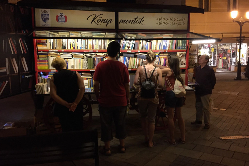 Nagy-nagy örömet jelentett nekünk négy évvel ezelőtt, amikor a kulturális értékekben és eseményekben gazdag Győrben is elindíthattunk könyvesszekeret. Az ott dolgozó munkatársaink különösen szeretnek változatos hangulatképeket készíteni az év minden szakában a belvárosban álló „Rábáról”. Arról a szekerünkről, amelyet a győriek és Győr környékén élők mellett a városba érkező turisták is igen kedvelnek.